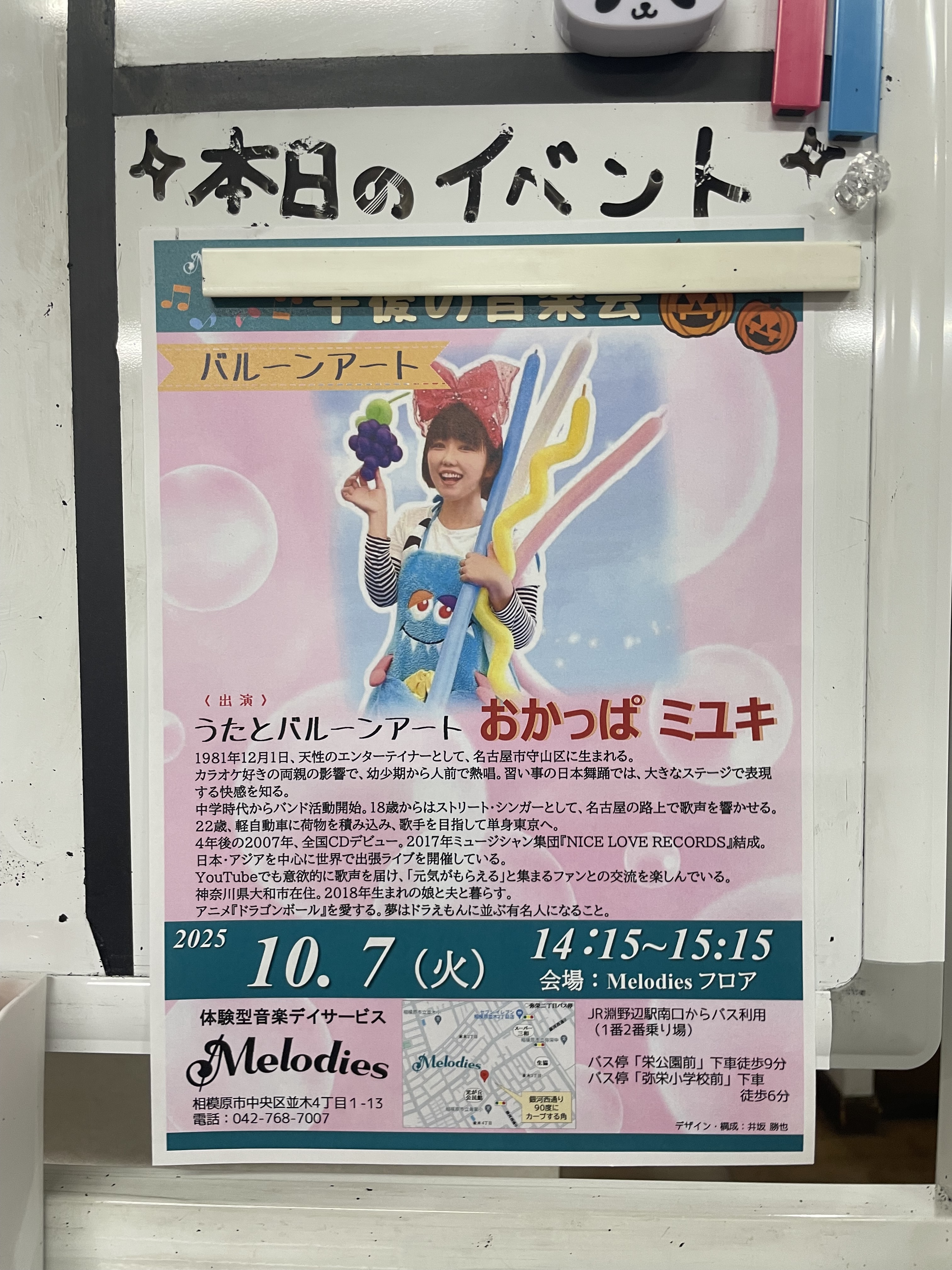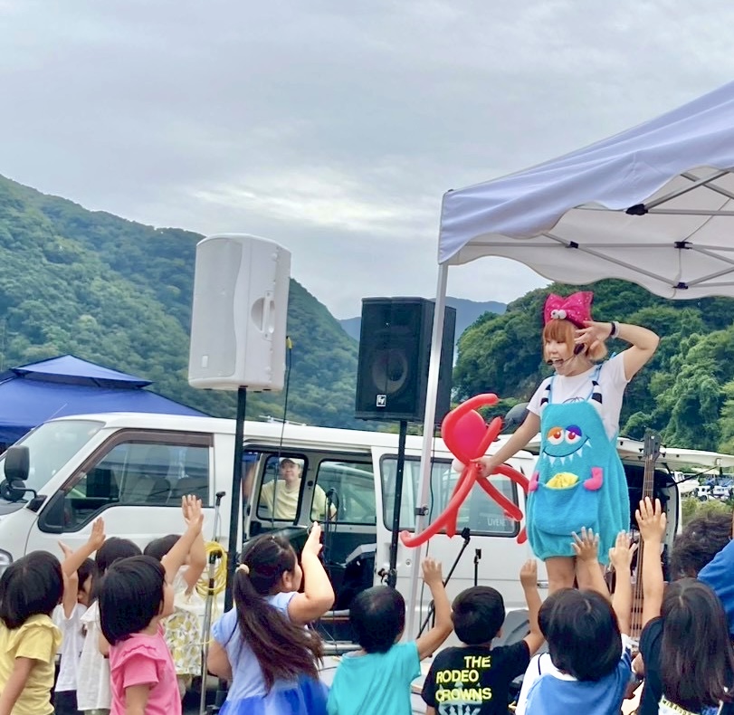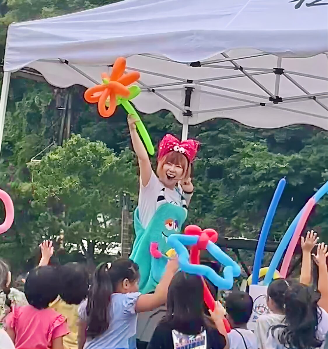 スーパーギタリストよこちゃんの生演奏に合わせて、歌とバルーンのショー!