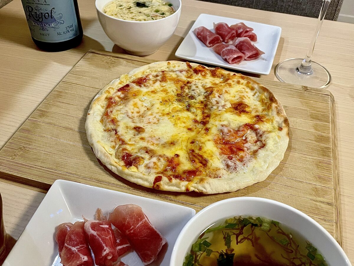 ピザを焼き、ティラミスに火をつけ、シュワっとするやつをグビっとしました。
