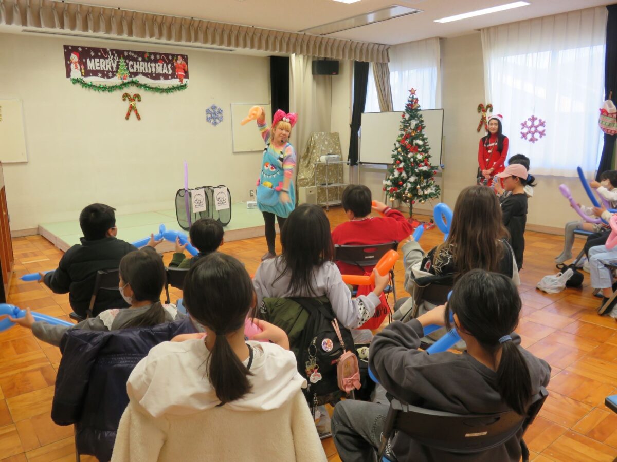 クリスマスバージョンのバルーンアートを披露すると、子どもたちは大喜び!