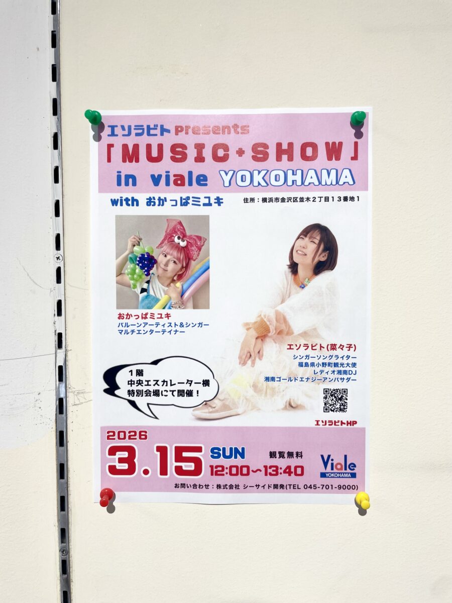 3月15日(日)はお昼12時からビアレヨコハマ1階特設ステージで、エソラビトさんと一緒に音楽とバルーンのショーをするよ!