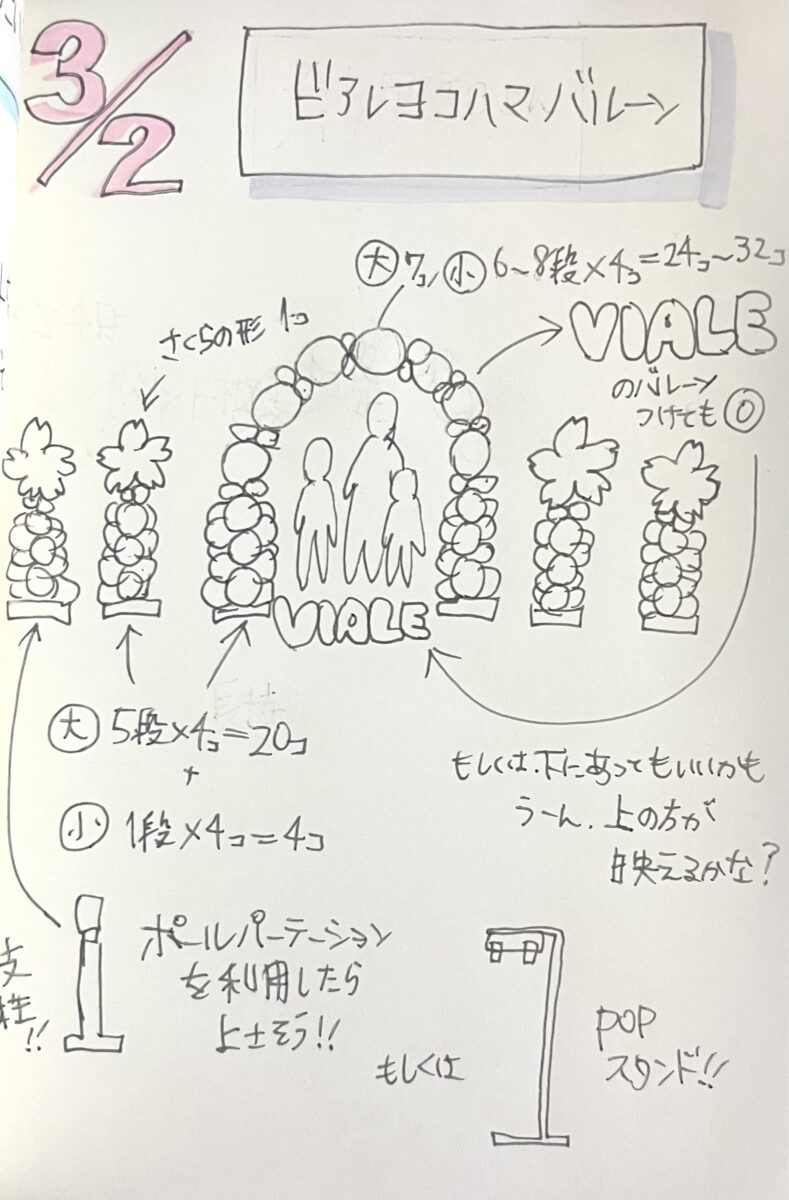 3月15日(日)にショッピングモール「ビアレヨコハマ」に設置するフォトスポットのアイデアを書き出してみたよ!